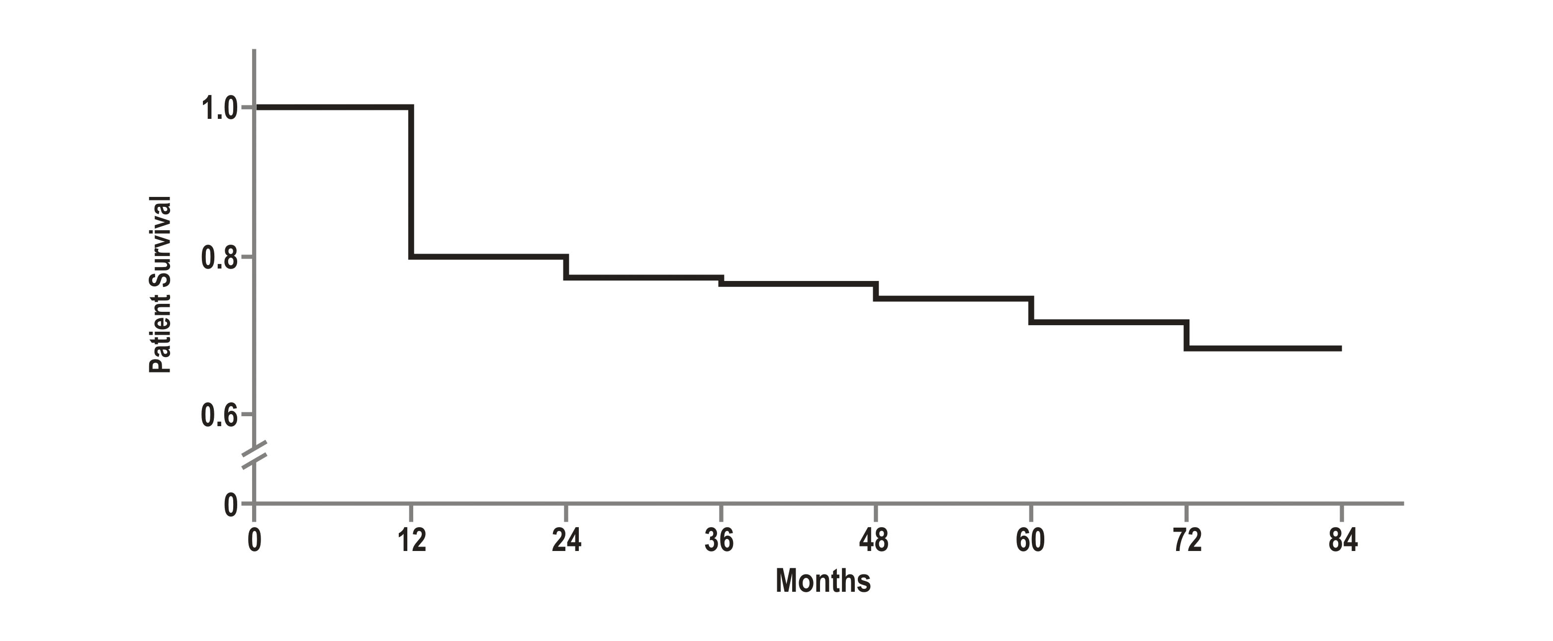 The rate of patient survival was 82% after 1 year and 72% after 5 years (Fig. 2). The graft survival rate was 78% after 1 year and 68% after 5 years. The leading cause of death was sepsis. Additional causes are shown in Table 2. Similarly, 40% of deaths occurred early (during the first 3 months); their causes were sepsis, massive bleeding and primary graft dysfunction. All the deaths due to massive bleeding occurred within the first two years after joining the liver transplantation program, and there were no deaths due to this cause during subsequent years. Late causes of death included cardio-cerebro-vascular disease and kidney failure.