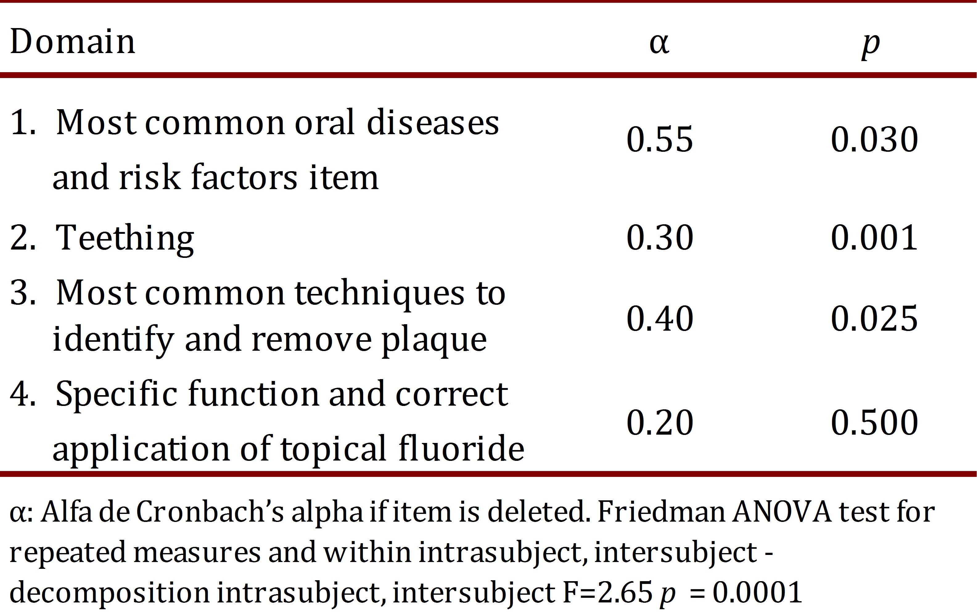 Se comparó las puntuaciones medias de los ítems incluidos en cada dimensión del CDPEP, mediante el ANOVA con prueba de Friedman (Tabla 2).
