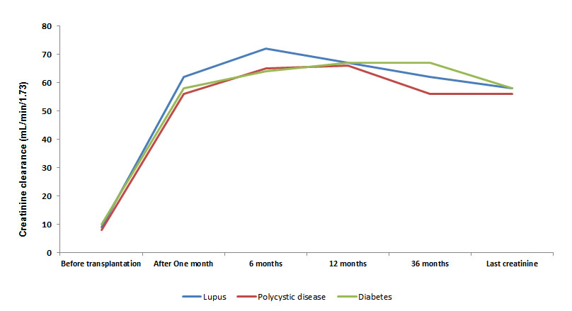 Con respecto a la supervivencia del injerto y del paciente, diferentes grupos han mostrado tasas de éxito similar en pacientes trasplantados con ERCT secundaria a LES y los trasplantados por otras causas 17-20; sin embargo, hasta la fecha, no hay estudios que los comparen en forma simultánea con grupos con excelente pronóstico luego del trasplante, como son los pacientes con enfermedad renal poliquística (ERPQ) y otro grupo con peor pronóstico, como la población con nefropatía diabética (ND) 19-23. Este estudio tiene como objetivo principal evaluar la supervivencia del injerto y del paciente, en los pacientes trasplantados renales con diagnóstico de ERCT secundaria a NL y compararlos con un grupo de pacientes trasplantados renales con ERCT secundaria a ND y ERPQ, entidades asociadas al peor y mejor pronóstico respectivamente luego del TR.