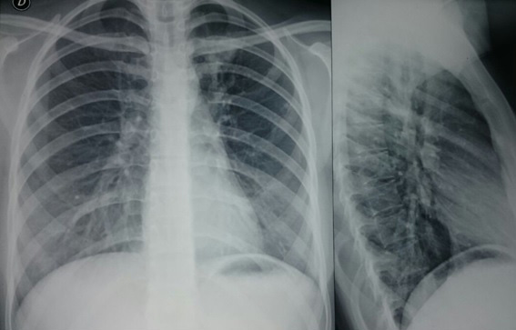 Se presentó al servicio de urgencias de una clínica de segundo nivel de Cartagena de Indias (Colombia), una paciente de sexo femenino de 22 años de edad, de etnia mestiza, con un cuadro clínico de seis días de evolución, con fiebre intermitente de 38° C y tos persistente, presentó hemoptisis masiva al quinto día del episodio febril. Dentro de los antecedentes personales no se encontraron enfermedades coomórbidas, tabaquismo, consumo de medicamentos ni sustancias psicoactivas. Se empleaba como recepcionista. Niega contacto epidemiológico con personas con sospecha o diagnóstico de tuberculosis. No se ha desplazado fuera de la ciudad donde habita. En los antecedentes familiares se encuentran hipertensión arterial e hiperlipidemia no clasificada.