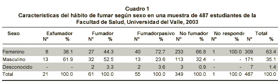 Smoking habit in students of first semesters of the Faculty of Health: characteristics and perceptions. Universidad del Valle, 2003