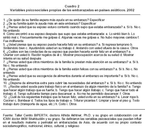 Evaluación periódica del riesgo biopsicosocial prenatal en la predicción de las complicaciones maternas y perinatales en Asia 2002-2003