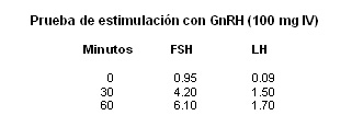 Los niveles basales de gonadotropinas (FSH, hormona folículo estimulante) y LH, hormona luteinizante), están bajos con una pobre respuesta inicial a la administración de GnRH pero con respuesta normal cuando la hormona se inyecta en pulsos en forma repetida14-16. Esto indica que el defecto radica en la secreción hipotalámica de GnRH. La anatomía de la hipófisis es normal y la secreción de las otras hormonas hipofisarias es normal. La concentración plasmática de testosterona está baja y la de prolactina es normal4,5.