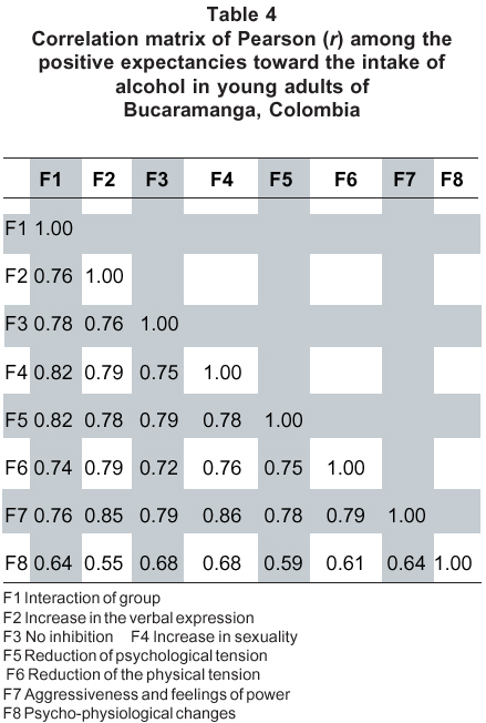 Expectancies toward the intake of alcohol in young adults of Bucaramanga, Colombia, 2005*