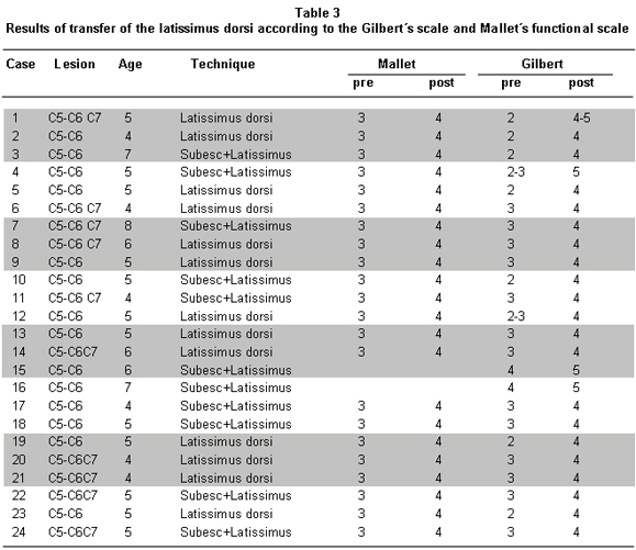 transferring the latissimus dorsi were good. Children who were