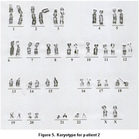 The clinical characteristics or the gravity of the clinical condition are not related to the extension of the deletion of the short arm of chromosome 18; as can be noted by the description of the two cases reported by Hadedank5, the ratio between women and men is 3 to 2, and gonodal dysgenesis has been reported along with menstrual and fertility disorders1.