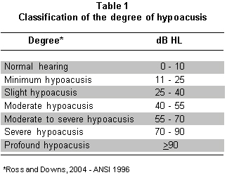 Deficiency in hearing capacity is the sensory alteration most frequently found in scientific literature. Its incidence in childhood is of one child with profound hearing loss per every thousand newborns1-3. The hearing impairment presented in this stage, prior to exposure to language, is denominated as pre-lingual; while that presented after having heard and even having developed language is denominated as post-lingual.