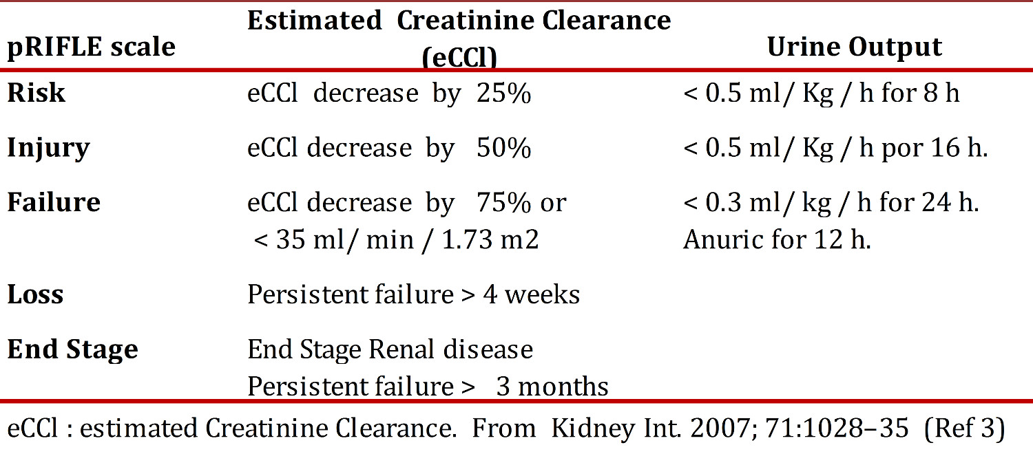 Future multi-centric pediatric studies of AKI, applying this new pRIFLE Scale and with standardized management of AKI will permit greater information on this pathology and will determine the risk factors in children.