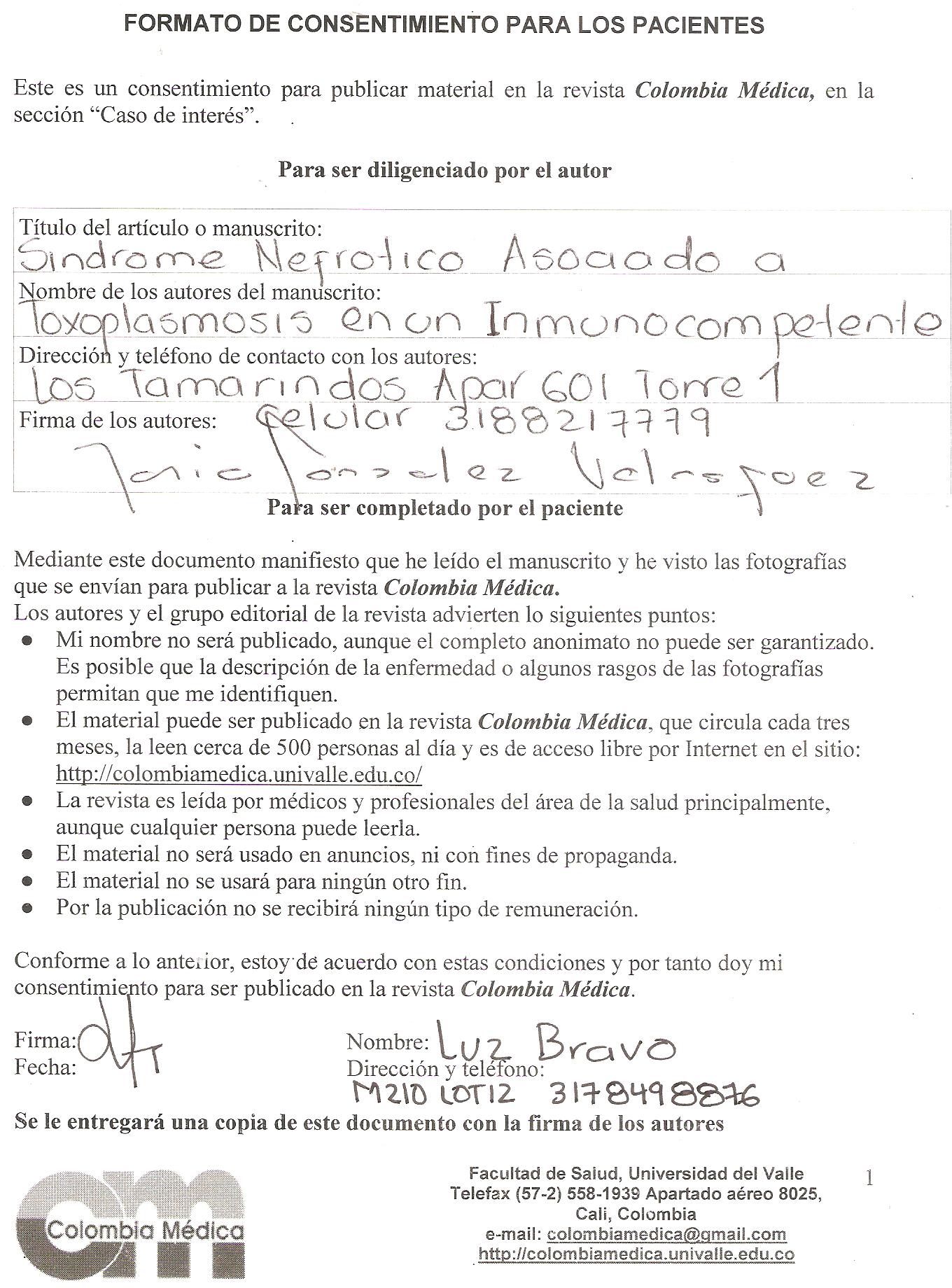 - NEPHROTIC SYNDROME MIXED ASSOCIATED WITH TOXOPLASMOSIS IN IMMUNOCOMPETENT