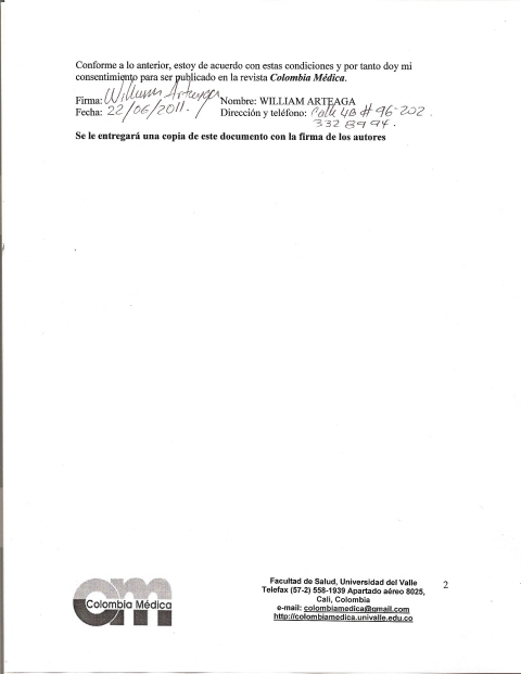 The copy rights of the articles published in Colombia Médica belong to the Universidad del Valle. The contents of the articles that appear in the Journal are exclusively the responsibility of the authors and do not necessarily reflect the opinions of the Editorial Committee of the Journal. It is allowed to reproduce the material published in Colombia Médica without prior authorization for non-commercial use